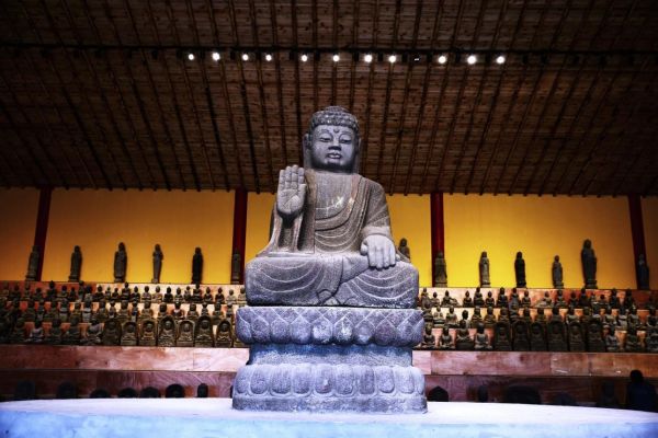 泗州普光王寺是中国历史上五大名刹之一,初建于唐朝,兴盛于北宋,饱经战乱和水患,屡建屡毁,康熙十九年随泗州城一起沉入洪泽湖底。在景区内重建的普照王寺景点建筑全部采用仿唐风格建设。博物馆内还有雕刻的缅甸玉,树化石,还有罗广石、竹雕、根雕包括木雕。整个园区南侧有万佛寺,里面也有石雕一些东西,全部是石雕、根雕一类,很震撼的。